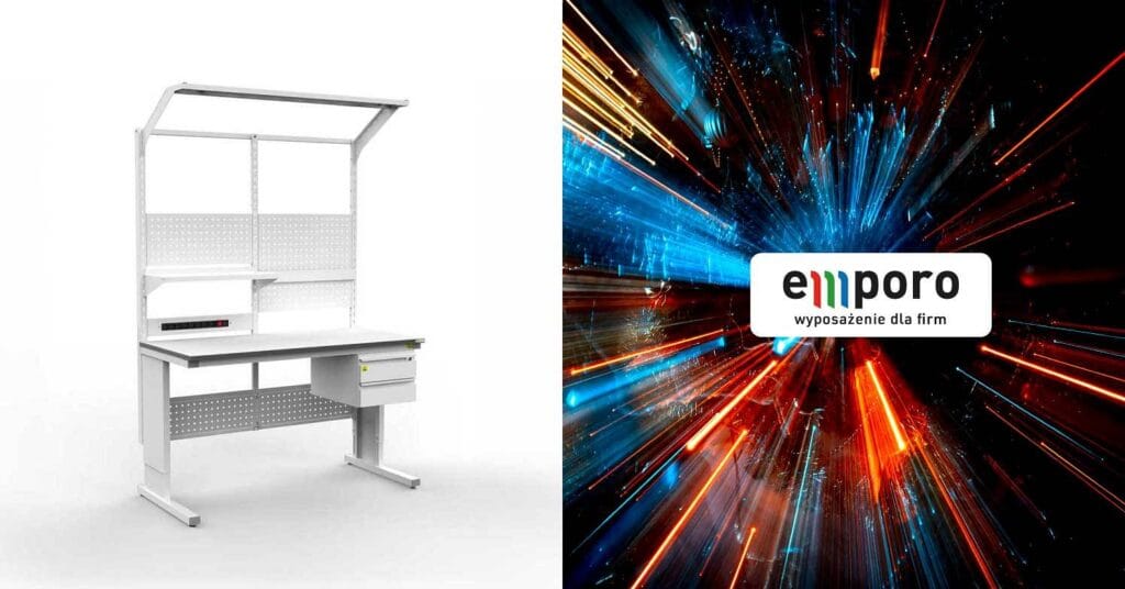 Stoły z dzieloną nadbudową wyposażone są w podwieszane kontenery z szufladami, półlistwę elektryczną, panele perforowane do zawieszania uchwytów oraz rampę z oświetleniem LED. Te zaawansowane modele oferują maksymalną elastyczność i są idealne do zastosowań w laboratoriach badawczych oraz na liniach produkcyjnych wymagających zaawansowanego wyposażenia. Montaż stołów jest prosty i szybki, a dostępność licznych akcesoriów umożliwia łatwą rozbudowę i adaptację do specyficznych potrzeb.
